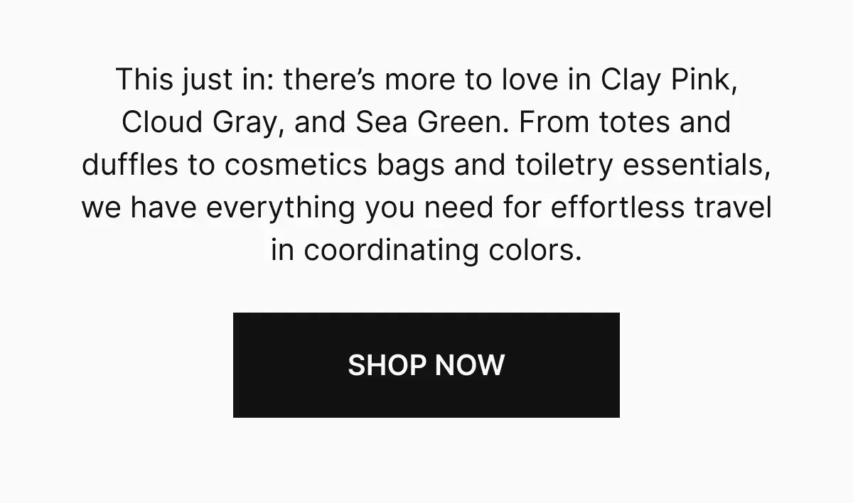 Enter Travel, Coordinated—a campaign that went beyond color. Yes, it was about matching your suitcase and bag. But more importantly, it was about traveling effortlessly with pieces designed to function as a set. We brought the idea to life through striking monochromatic visuals, thoughtful art direction, and copy that positioned packing as a form of self-expression. From web copy and social to email and retail, the campaign encouraged travelers to move with intention—and look good doing it.